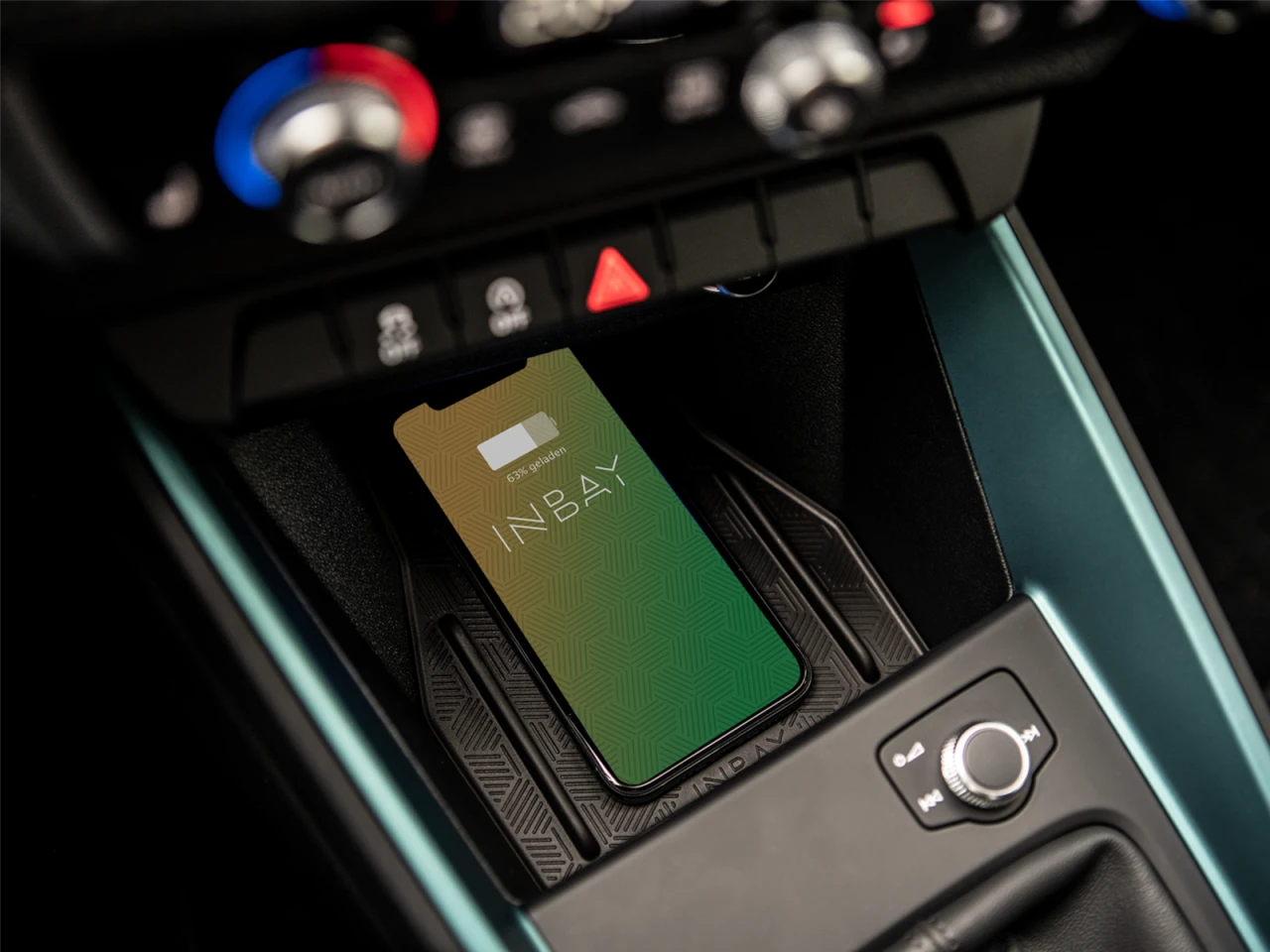 Dieses Ablagefach unterstützt das kabellos induktive Laden von Smartphones mittels INBAY®.