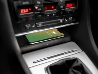 Dieses Ablagefach unterstützt das kabellos induktive Laden von Smartphones mittels INBAY®.