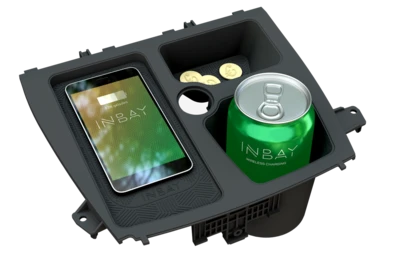 Dieses Ablagefach unterstützt das kabellos induktive Laden von Smartphones mittels INBAY®.