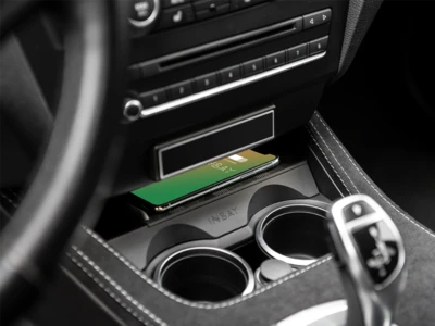 Dieses Ablagefach unterstützt das kabellos induktive Laden von Smartphones mittels INBAY®.