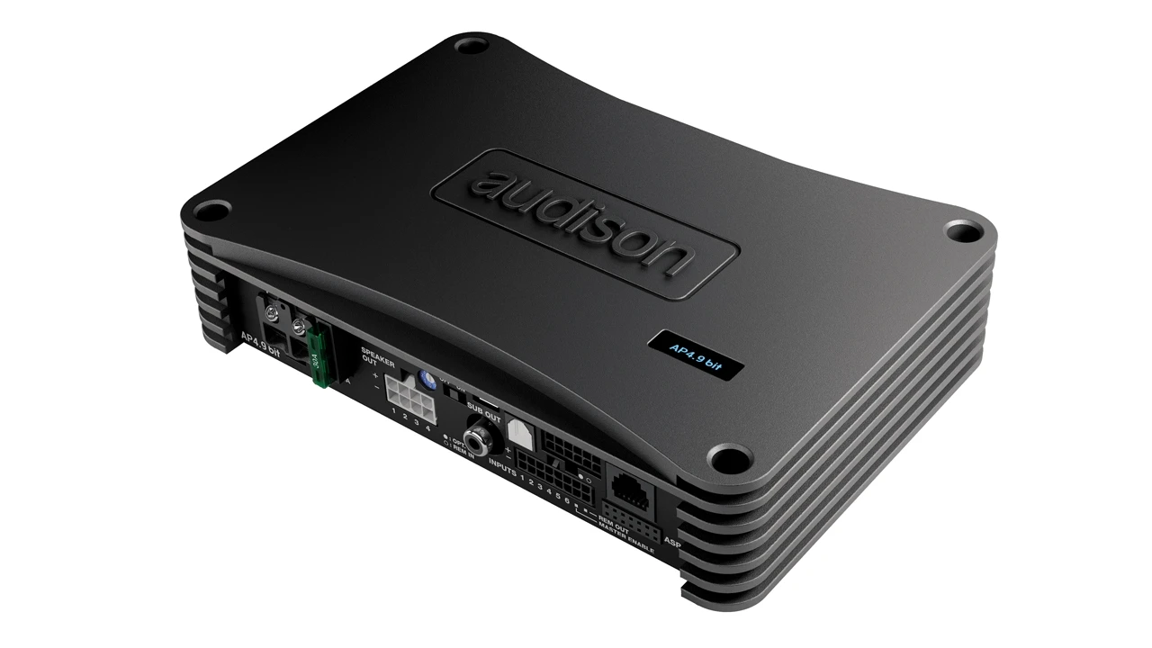 Der AP 4.9 bit ist der starke Front/Rear DSP Verstärker, er verfügt über 4 frei programmierbare Endstufenkanäle und 5 programmierbare Ausgänge zur Erweiterung mit dem AP 4D und AP 1D für eine maximale Systemleistung von 1560W. Die Kanäle des AP 4.9 bit sind 2 Ohm stabil und brückbar, ermöglichen so eine nahezu verdoppelte Ausgangsleistung. Durch die Spannungsstabilität bis 7,5V ist auch der Einsatz bei Fahrzeugen mit Start/Stop Automatik gewährleistet, der Verstärker schaltet beim Fahrzeugstart nicht ab.