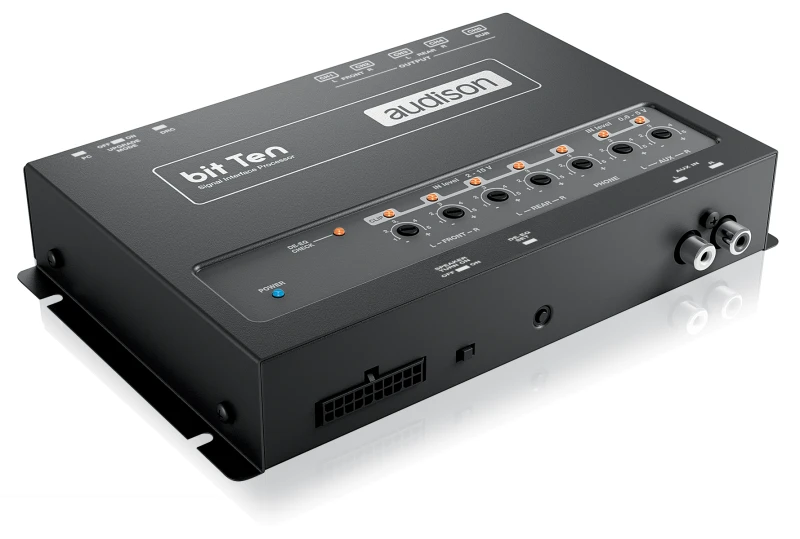 Schnell wurde der Bit one weltweit zu der Referenz unter den Audio-Prozessoren. Die Erfahrungen, die unser Team erworben hat, erlaubt es uns, unsere Prozessorfamilie zu erweitern; um einem breiteren Publikum die Möglichkeit zu Realisierung leistungsfähiger Systeme zu erlauben. Der Bit Ten stammt direkt von seinem Vorgänger ab, dem Bit one, so erhielt er z.B. dessen Signal-Management, grundlegende Funktionen und die PC-Software. Die Bit-Ten-D-Version kann zum Beispiel auch ein digitales Eingangssignal von der Head Unit managen und ein digitales Signals an einen oder mehrere Verstärker mit AD-Link ausgeben.