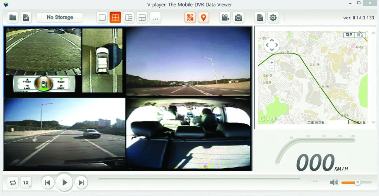 - Einfache Viewer Software zur Auswertung der Daten am Computer mit Darstellung von Kamerabildern, GPS-Position über google maps, Geschwindigkeit, G-Kräfte, Uhrzeit und Datum.
