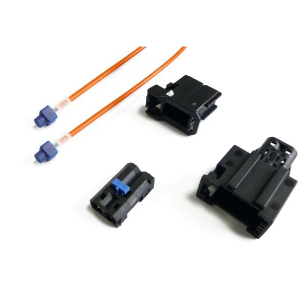 1 Lichtleiterkabel 40 cm lang, mit 1 Stück zweipoligem Stecker und 1 Stück 2 poliger Buchse. Für die Bildung von Brücken und Schließung des Lichtleiterrings im Fahrzeug, wenn eine Lichtleiterkomponente aus dem Ring entfernt oder überbrückt werden soll.