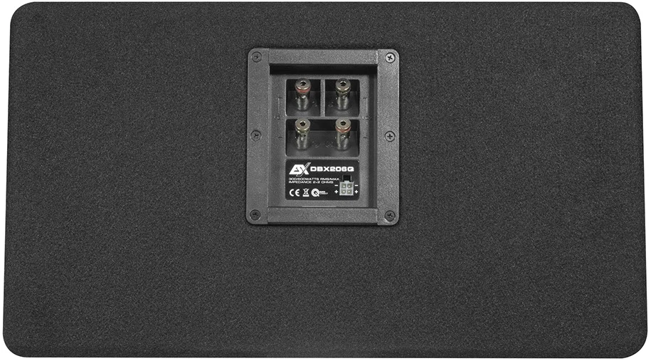 Die DBX Bassreflex-Systeme mit Trapezgehäuse sind alle mit Schutzgittern ausgestattet, welche die hochwertigen Tieftöner mit geschöpfter Papiermembran optimal schützen. Diese sind mit einer belastbaren 50 mm Schwingspule (DBX206 38 mm) ausgestattet und sorgen für kraftvollen Bass. Speziell die beiden kleinen Dual Subboxen drehen hier mächtig auf und bieten für ihre kompakten Abmessungen enorm viel Bass-Spaß. Alle Modelle der DBX Serie sind mit einem QUICK CONNECT Anschlussterminal ausgestattet, mit dem der Anschluss per Molex-Steckverbindung im Handumdrehen zu bewerkstelligen ist. Zusätzlich bietet das neu entwickelte Multi-Terminal auch die Möglichkeit, via Push-Pin handelsübliche Verstärker anzuschließen.