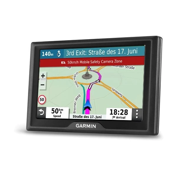 Roadtrips machen mehr Spaß mit dem benutzerfreundlichen Garmin Drive 52-GPS-Navi. Live-Verkehrsdaten und Karten-Updates sind ebenso enthalten wie nützliche Informationen für Fahrer, die die Sicherheit beim Fahren erhöhen sollen.