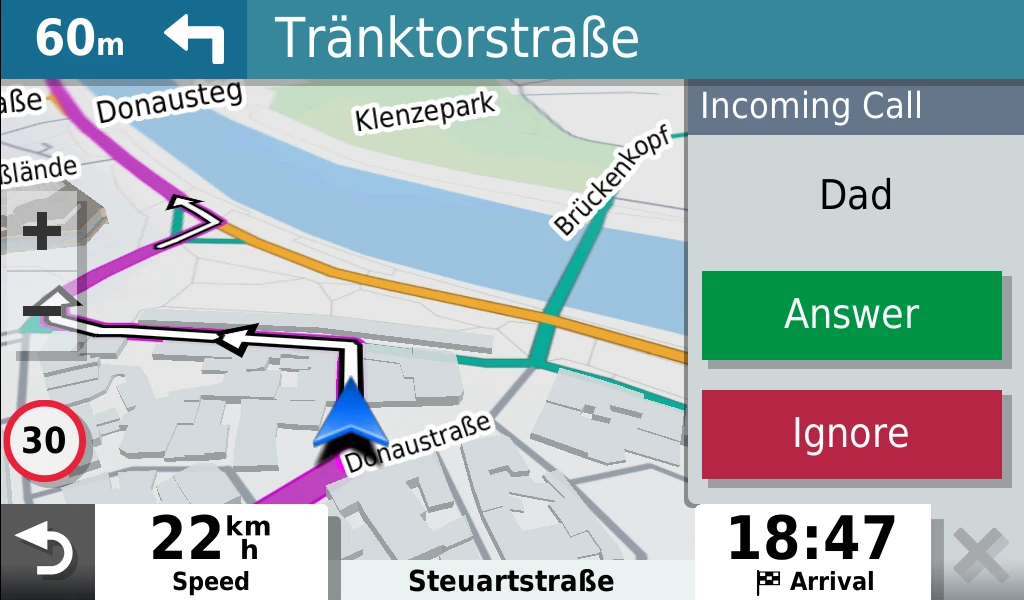 Kopple das Navi mit deinem Telefon und lade die Garmin Drive™ App herunter. Schon kannst du auf Echtzeitinformationen zugreifen2, darunter Live-Parkplatzdaten3 Radarkontrollen, Live-Verkehrsdaten und Wetterbedingungen. Wenn eine Verbindung besteht, werden SMS-Nachrichten und andere Benachrichtigungen2 von deinem Smartphone direkt auf dem Screen des Navis angezeigt.