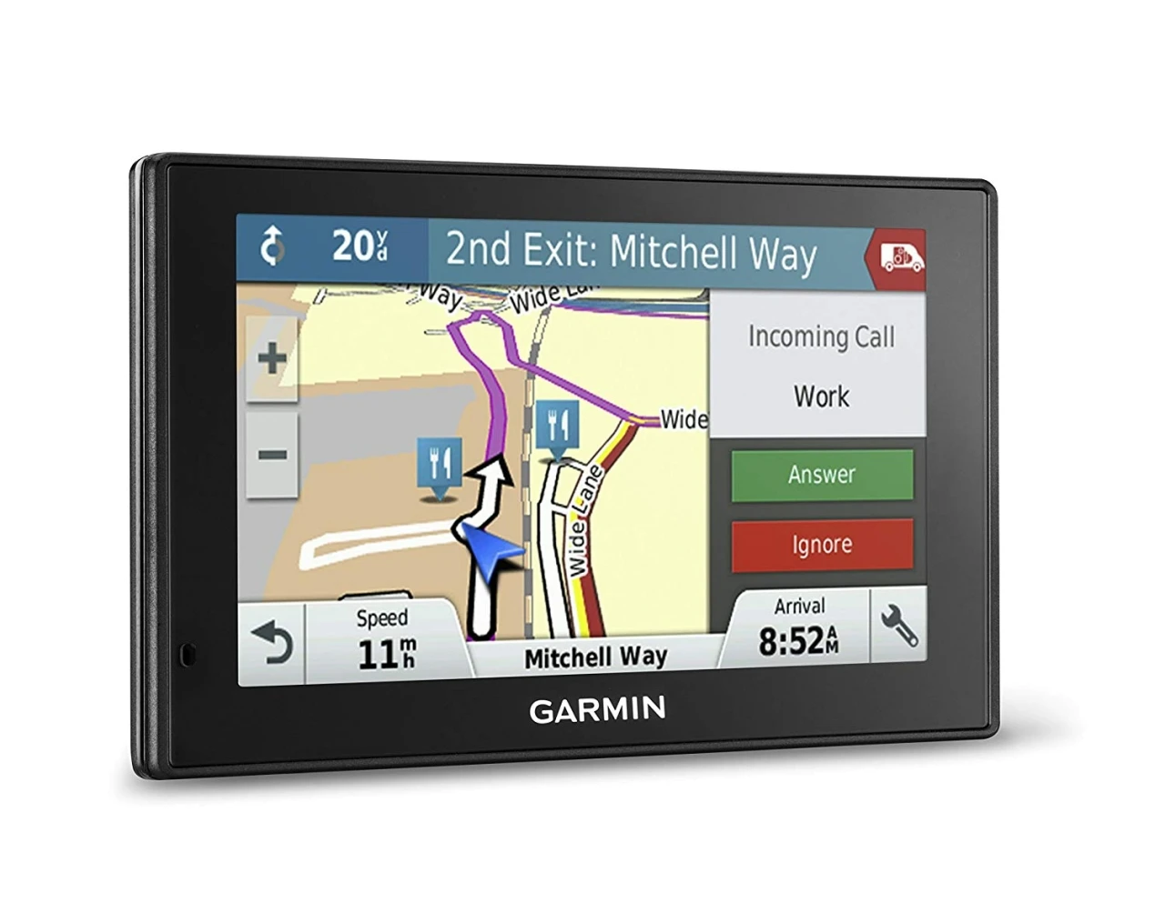 Garmin DriveSmart has a search field that makes it easy to find addresses and millions of POIs. Simply enter a category (like “pizza”), an entire address or a proper name (“Starbucks”), and Garmin DriveSmart quickly returns your results. In case of a misspelling, Garmin DriveSmart provides multiple search results that sound similar to what you’ve entered.