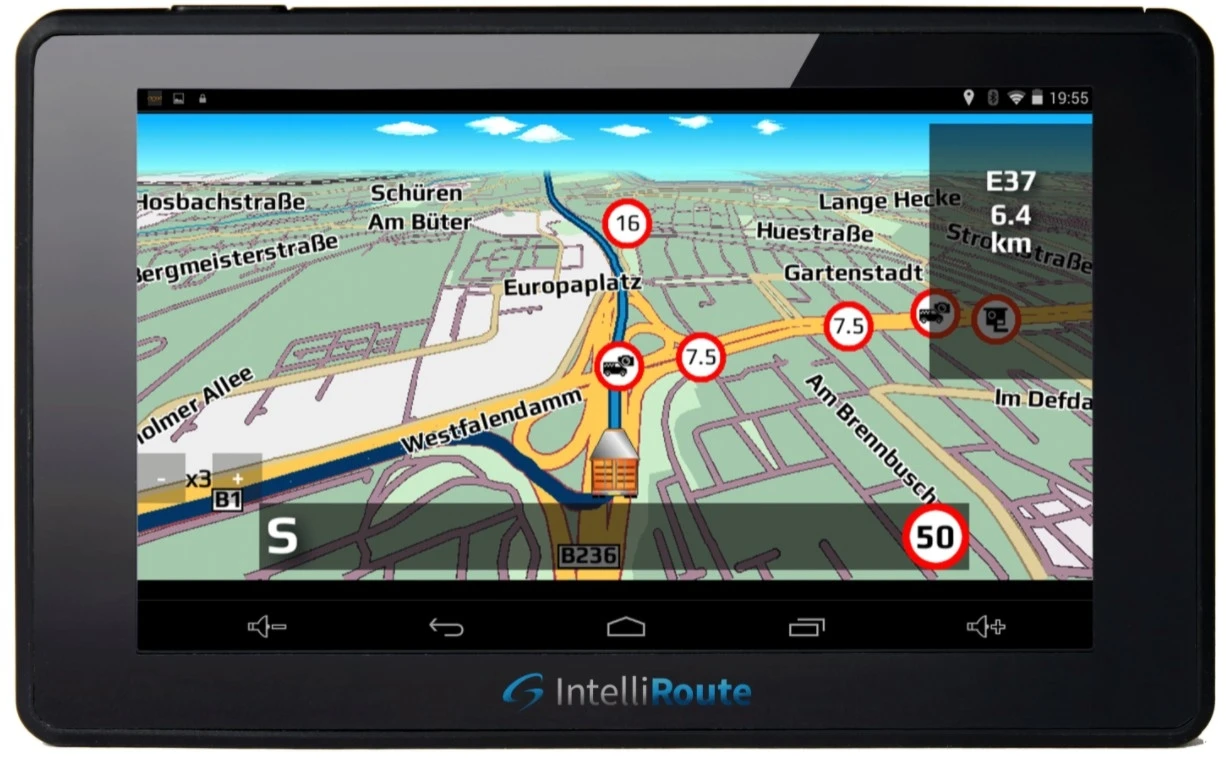 IntelliRoute erstellt eine Route basierend auf den Eigenschaften Ihres Fahrzeuges. Teilen Sie dem Gerät einfach die Größe, das Gewicht, die Ladungsart, die Schadstoffklasse und andere mit, und die spezialisierte Software wird eine sichere, Lkw-freundliche Route berechnen. Die Routen werden auf Grundlage von Straßen mit angemessener Breite und Höhe berechnet; dabei werden niedrige Brücken oder Gewichtseinschränkungen sowie viele weitere Gefahren vermieden.