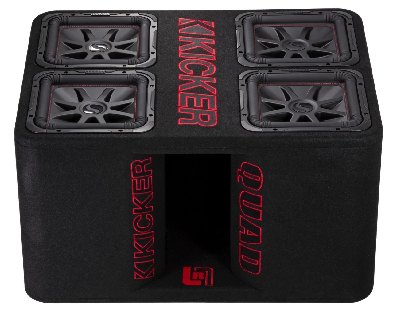 Mit einer RMS-Leistung von 2.400 Watt macht dieses gigantische Subwoofersystem wahrhaft massive Bassattacken möglich! In diesem Gehäuse sind vier L7R 12″ Subwoofer vorinstalliert und für den 2 x 2 Ohm Betrieb verkabelt. Die schwere Konstruktion aus Birkenmutiplex und die dicke Innenverstrebung halten das Gehäuse auch bei extremen Schalldruckpegeln stabil. Das QL7R12 ist mit einem strapazierfähigen Teppich bezogen und KICKER-Logo bestickt.