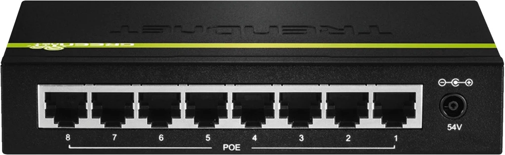 - 8 Ports (RJ45) mit je 10/100/1000 Mbps, 8 PoE-/PoE+-Ports