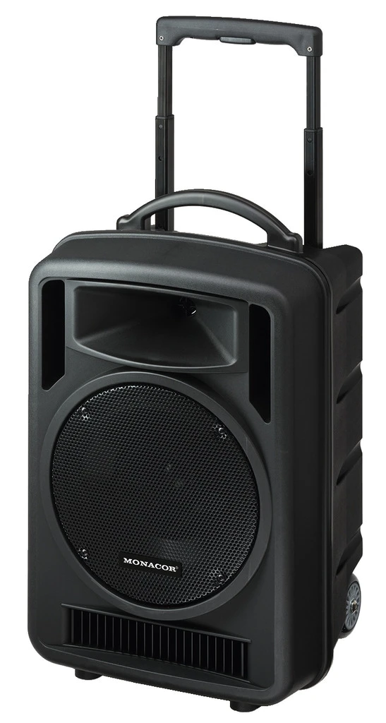 - Durch den ausziehbaren Teleskopgriff und 2 Rollen kann das Verstärkersystem bequem wie ein Trolley gezogen werden