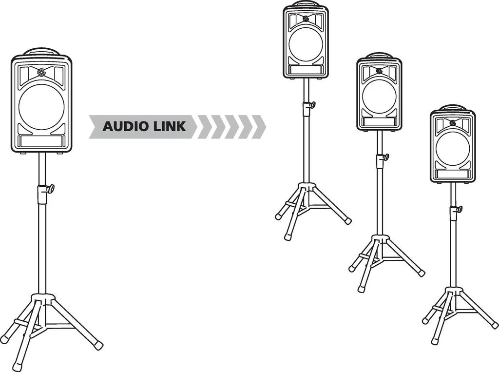 mit integrierter, einstellbarer Multi-Frequenz-Empfängereinheit in UHF-PLL-Technik - Betrieb über Netzanschluss oder eingebauten Blei-Gel-Akku 2 x 12 V/3 Ah (bis zu 4 Stunden Betriebszeit), integrierte Akku-Ladeautomatik, Entladeschutz
