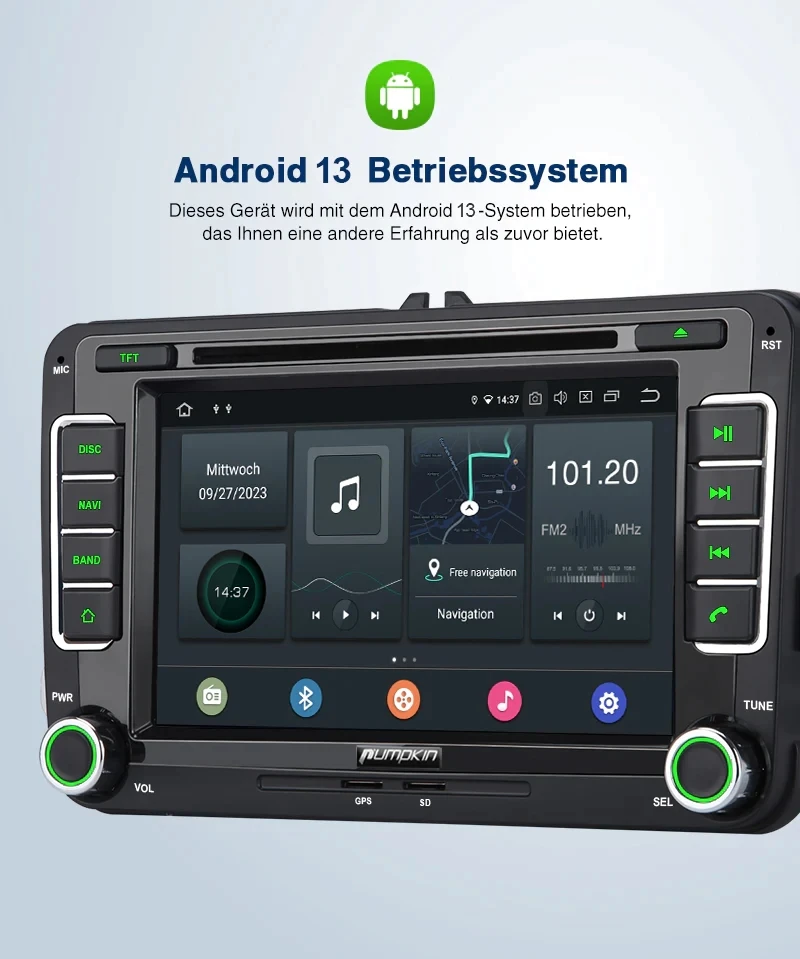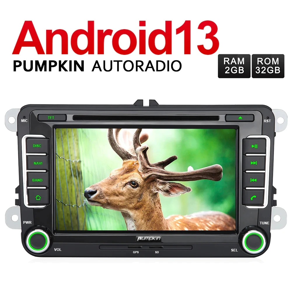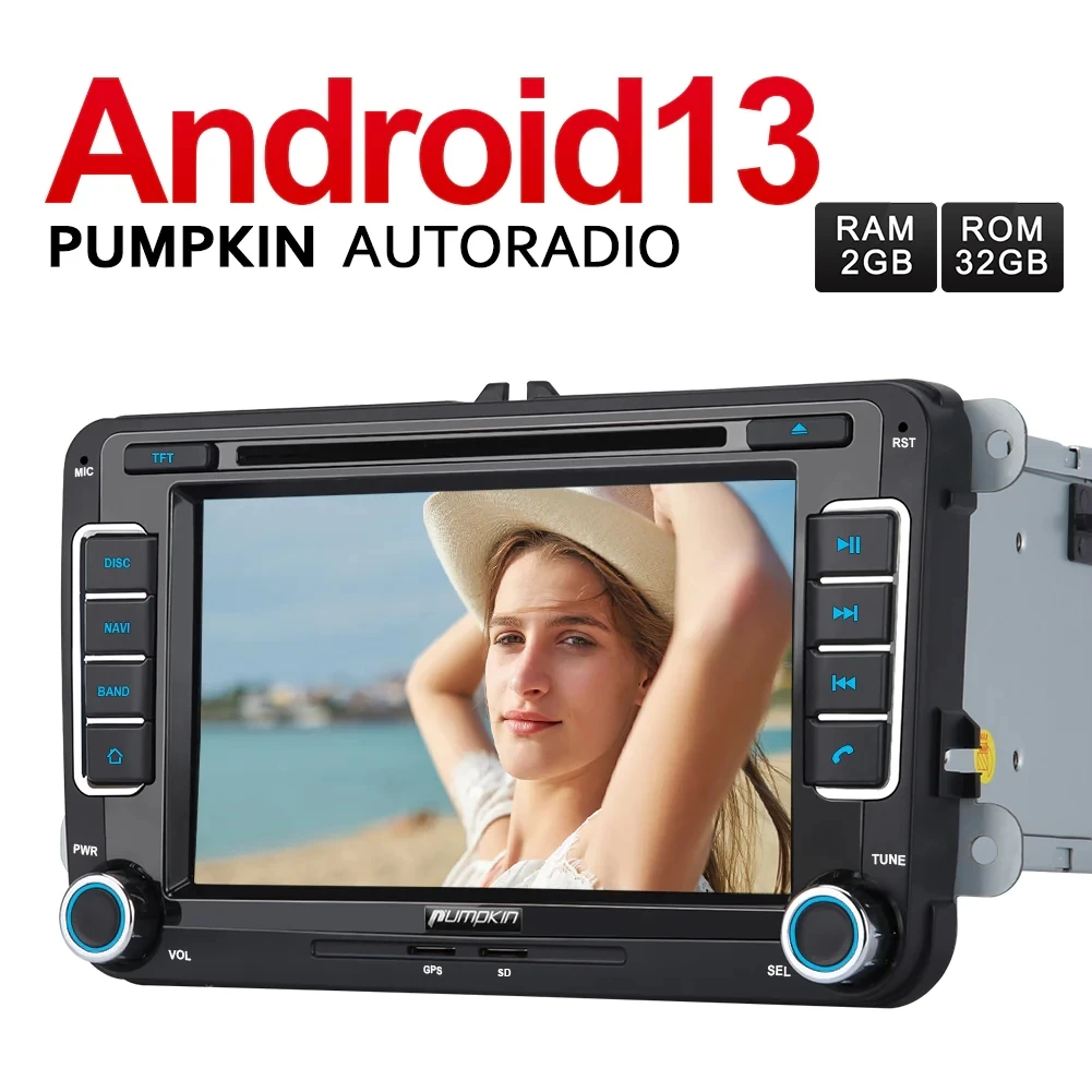 Pumpkin Android 13 Autoradio für VW Golf Touran mit Navi Bluetooth Kamera 7 Zoll Bildschirm, Unterstützt Android Auto DAB+ CD Player