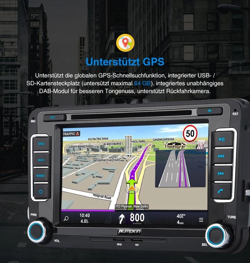 4.Unterstützen Sie die globale GPS-Schnellsuchfunktion, den integrierten USB / SD-Kartensteckplatz (maximale Unterstützung 64 GB) und die Rückfahrkamera (Kamera optional).