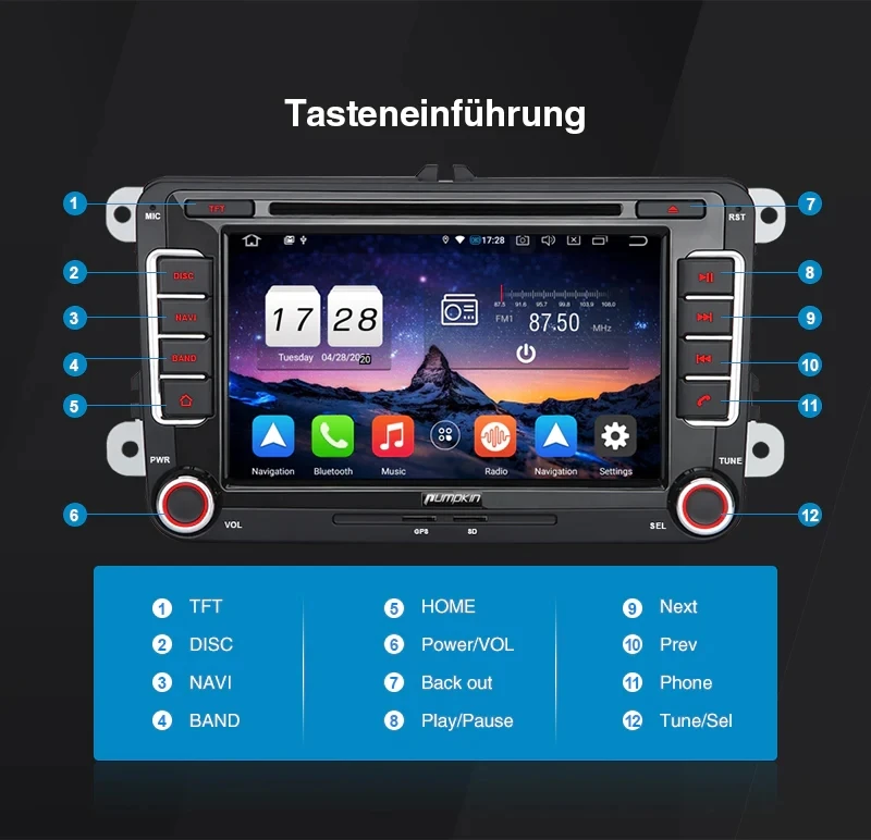 - Unterstützt die Bluetooth Audio Player / Telefonbuch Funktion