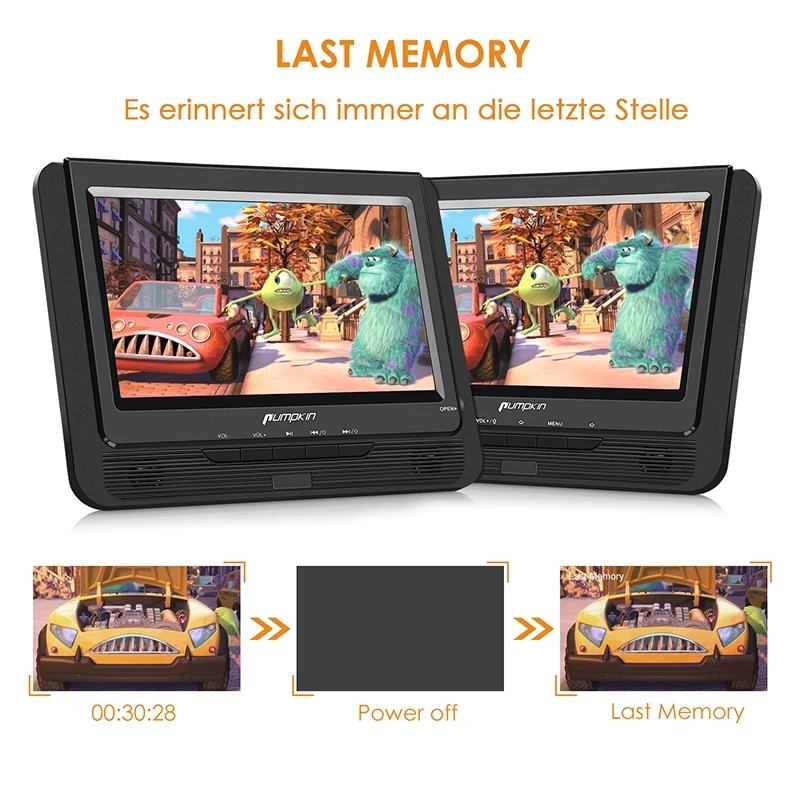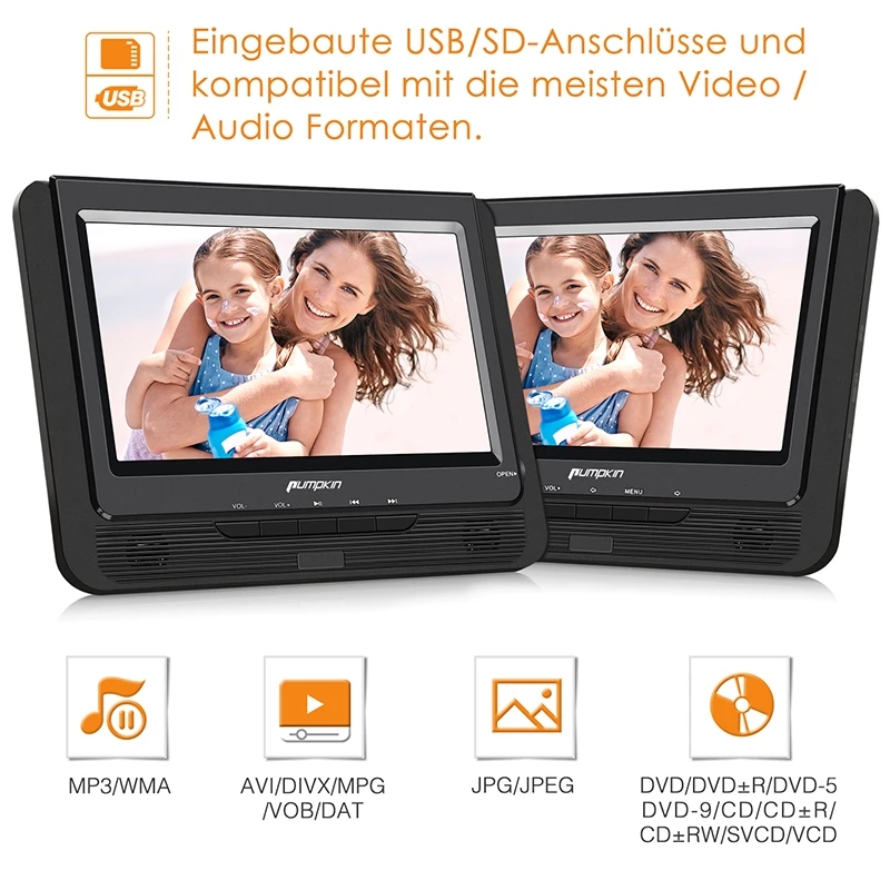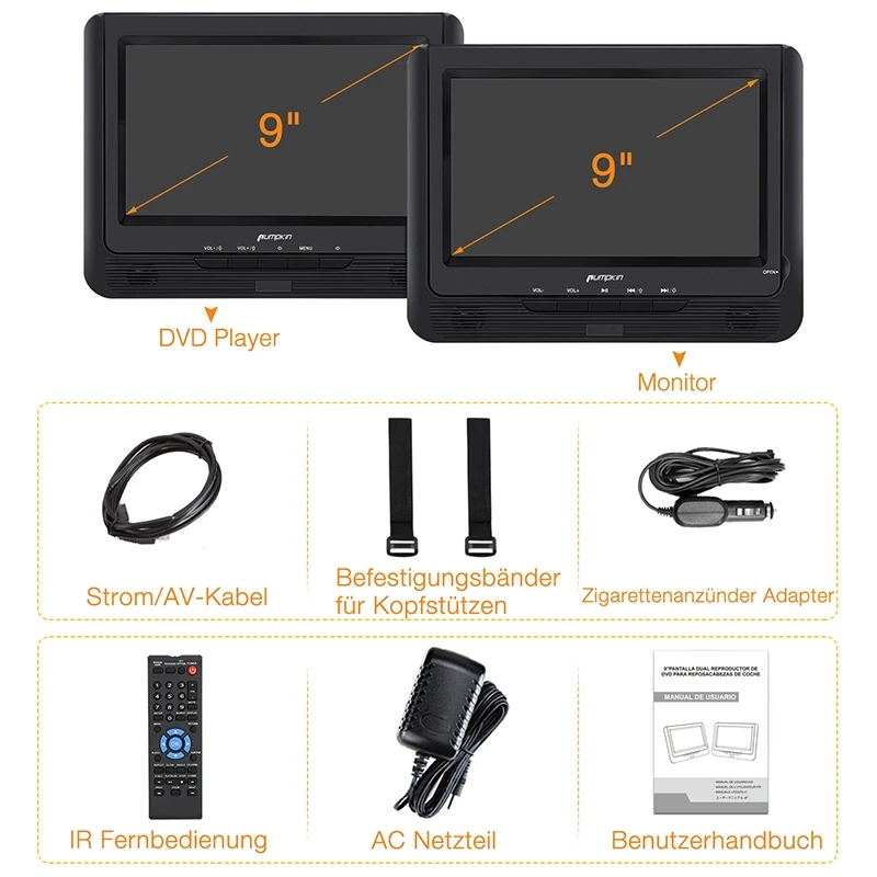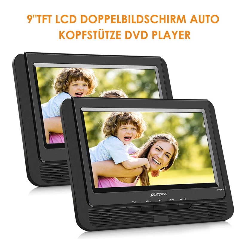 Pumpkin 2 x 9″ LCD Tragbarer DVD Player Monitor der Kopfstütze Auto Kopfstützen Monitor USB SD MP3 Spieler AKKU
