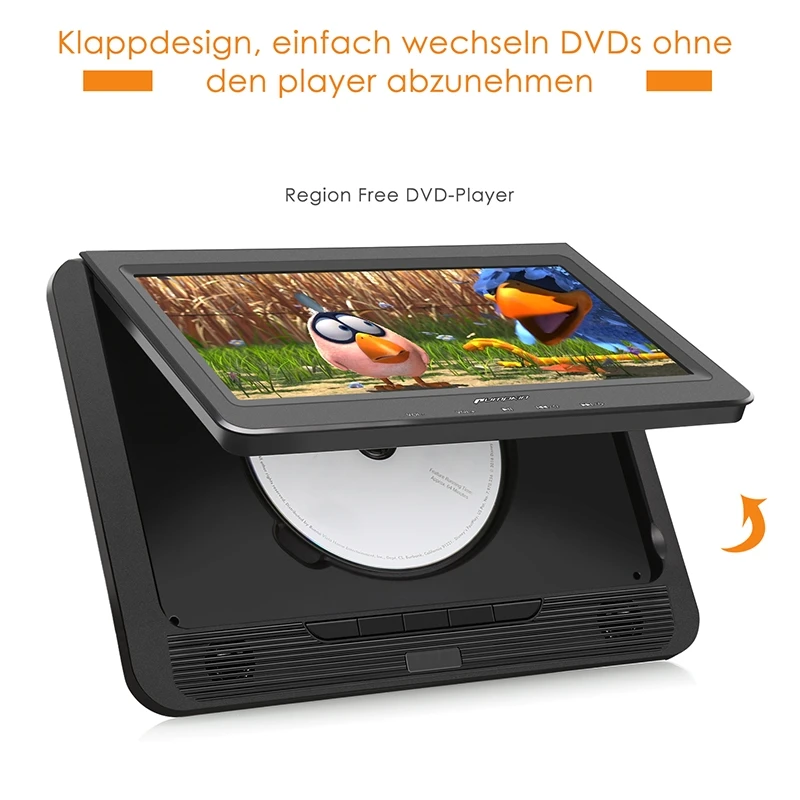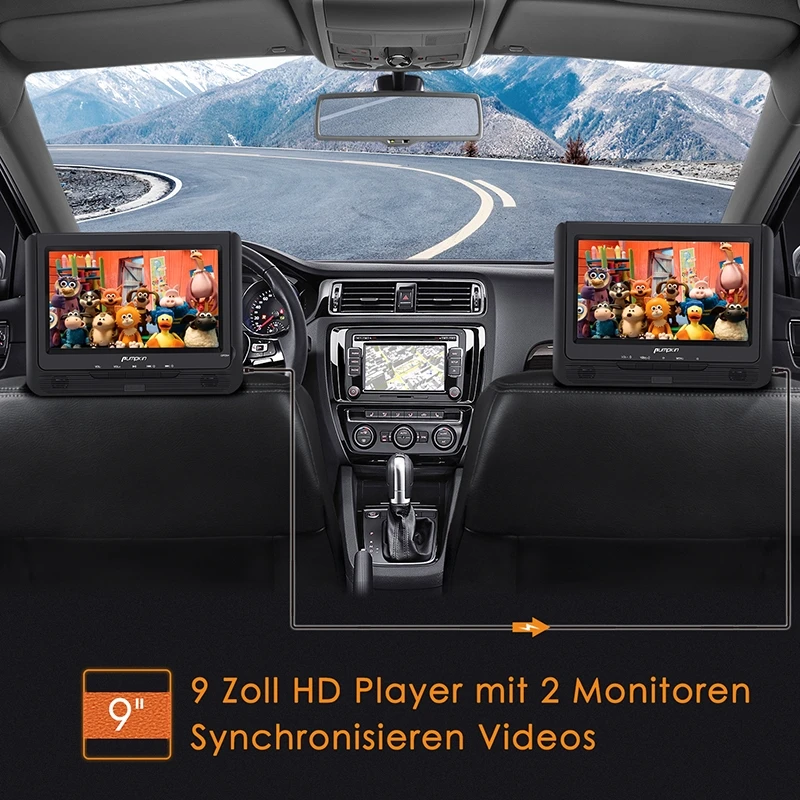 - Der tragbare Dual-Screen-DVD-Player kann das gleiche Video auf jedem seiner 9-Zoll-TFT-HD-Displays streamen und Ihre jüngeren Passagiere für lange Zeit unterhalten.