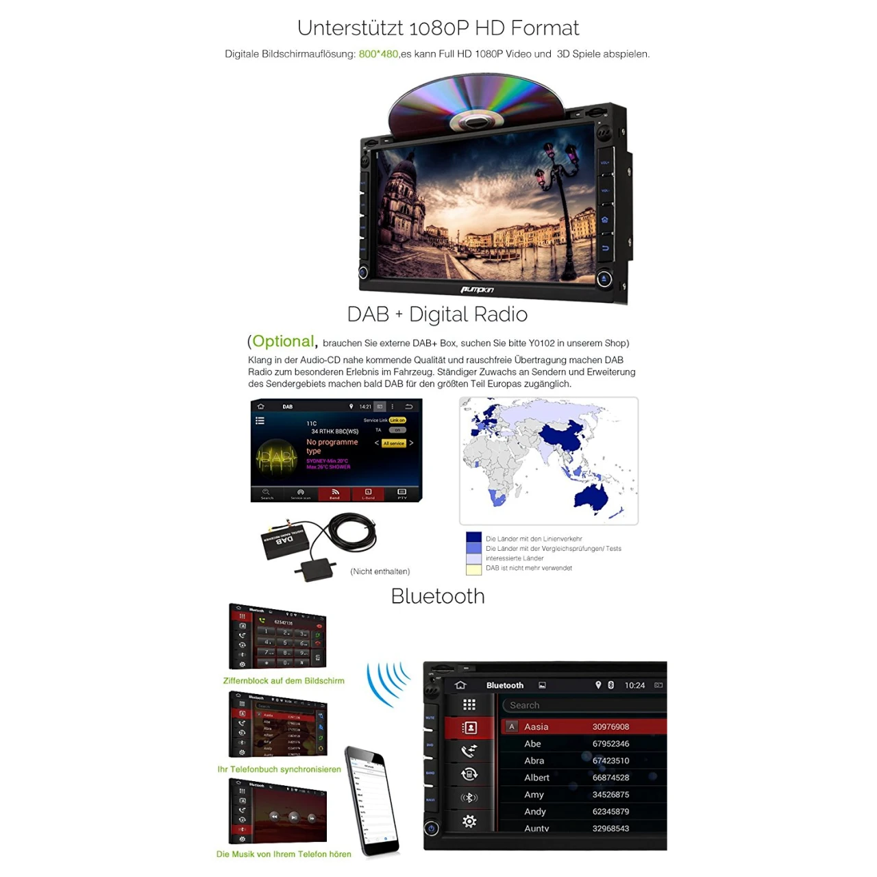 DAB+ Digitalradio(Optional): Benötigen DAB+ Box (Suchen Sie Y0102 auf unserem Shop)