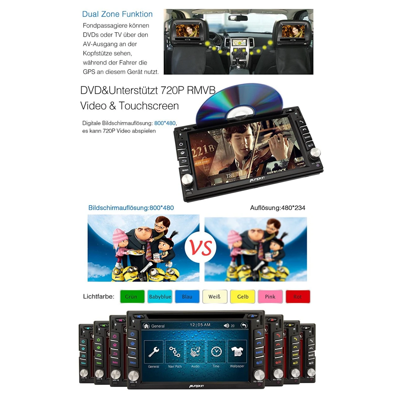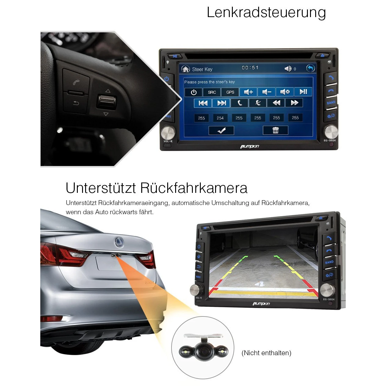 - Unterstützt RCA Rückfahrkamera-Eingang