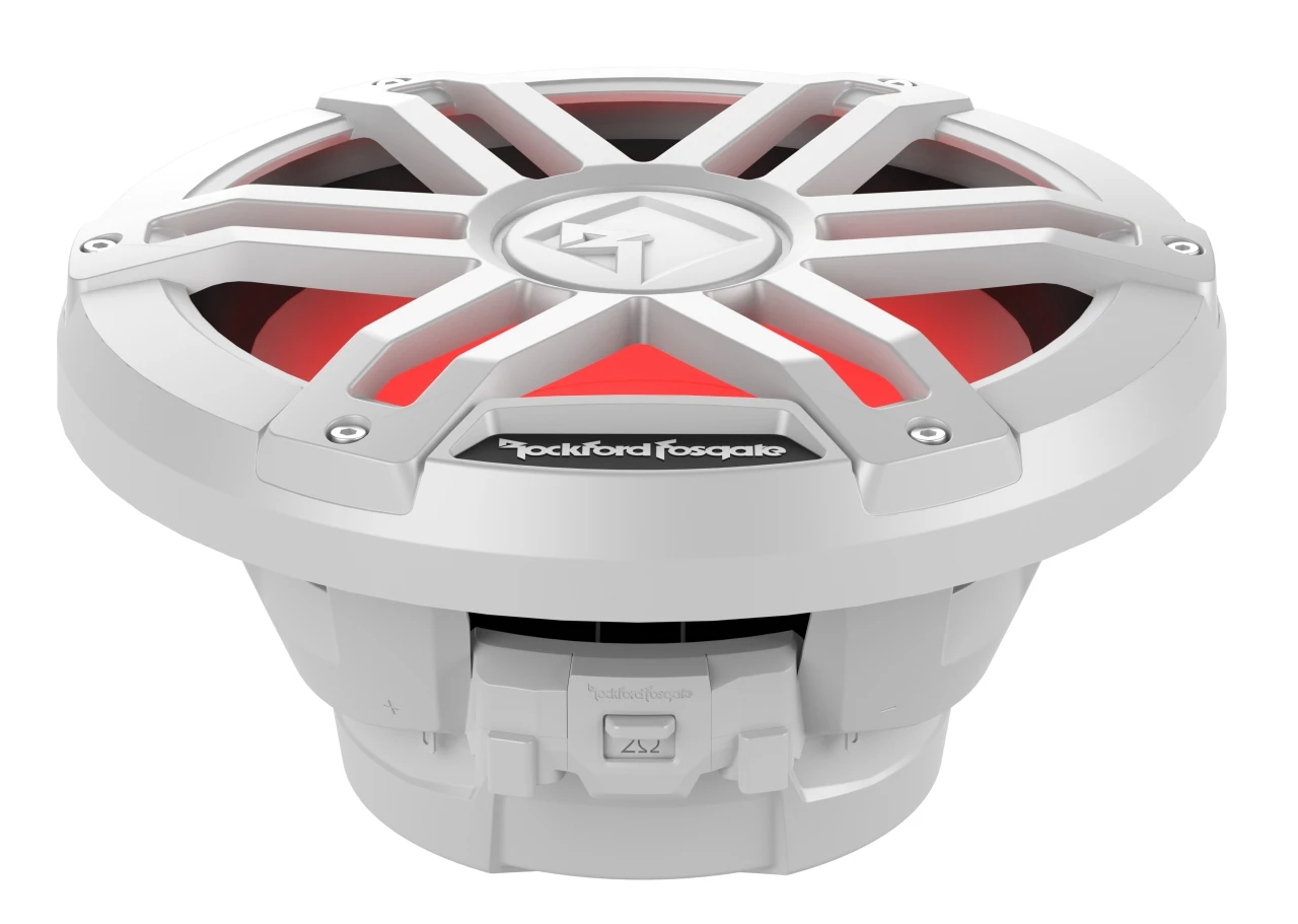 The M1 series of Element Ready™ subwoofers are designed to pair with the Rockford Fosgate Color Optix™ Controller and RF Connect App through its Deutsch™/Amphenol™ connectors integrated into the basket. This combined with their IP67 certification make these speakers Element Ready™ and truly purpose built for marine applications. To compliment the plug and play connectivity and streamline installation, M1 subwoofers are equipped with a VersaSwitch™ to make changing impedance between 2 and 8 Ω as easy as flipping a switch.
